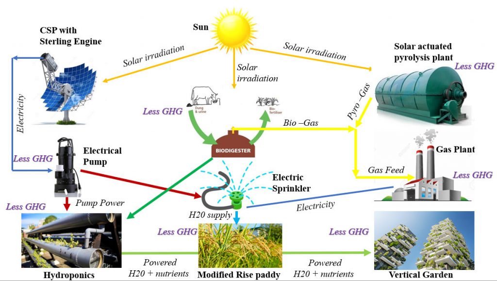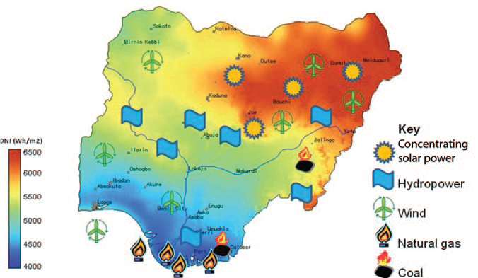 Fortunately, Nigeria is blessed with a large amount of Solar energy which ranges from 2KW/m2-6.5KW/m2 that spans from the southern to the Northern part of Nigeria. This solar energy can be used in the form of Concentrated solar power (CSP) for electricity through Solar Power plants, enhancing Agricultural produce, creating a self-sustaining irrigation system, re-inventing the manufacturing sector through metal smelting, promoting energy-efficient Pyrolysis and Gasification processes as well as creating a hybridized technology for the transportation sector.